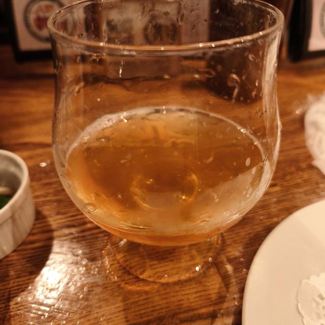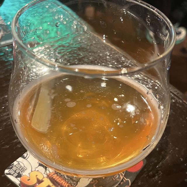 岐阜県清酒酵母NFG酵母。 岐阜県酵母はG酵母→泡なしGFKとカプロン酸エチルの生成が多いG2。 酒イーストビアらしい香りと味わいだがかなり落ち着いていてどっしりと構えた味わい。 アルコールつよいなあ、お腹が熱くなるやつ。 岐阜酵母の日本酒をそれとして飲んだ記憶がないので比較できないが、ビールとして考えると落ち着いた吟醸香にそれを超える甘みが際立つ。 この甘さは水あめ使ってるからかな。 水あめはおそらく発酵のための糖分なんだろうけどアルコールになりきらない分が残ってる。 薄濁で綺麗な淡色の琥珀色