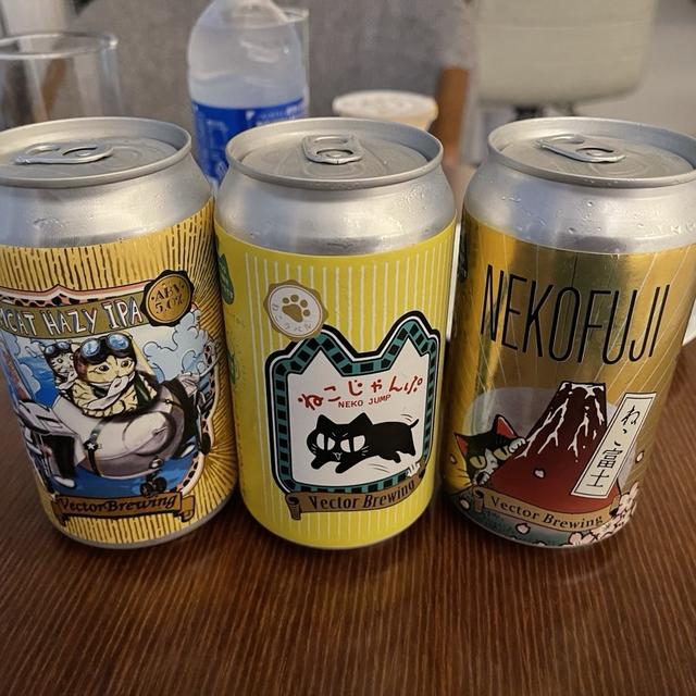 右側のビール #catthemedbeers。3 つの中で群を抜いて最高です。良いジュースバランスの良い