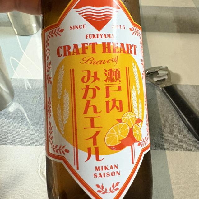 説明 | セゾンをベースに瀬戸内産の温州みかんピールと温州みかんジュースを使用。 みかんピールの香りとセゾン酵母の醸しだすスパイスの香り、小麦麦芽由来の滑らかで素朴な風味が心地よい味わいのビールです。 二次発酵時に搾りたてのみかんジュースを投入することで、みかんの糖がわずかに発酵し複雑なテイストを生み出しています。 瀬戸内海のみかん畑を連想させる爽快な味は、女性にもオススメです。 SRM:12 IBU:26 AVB:4.5% https://craft-heart.com/shop_products/mikanale |