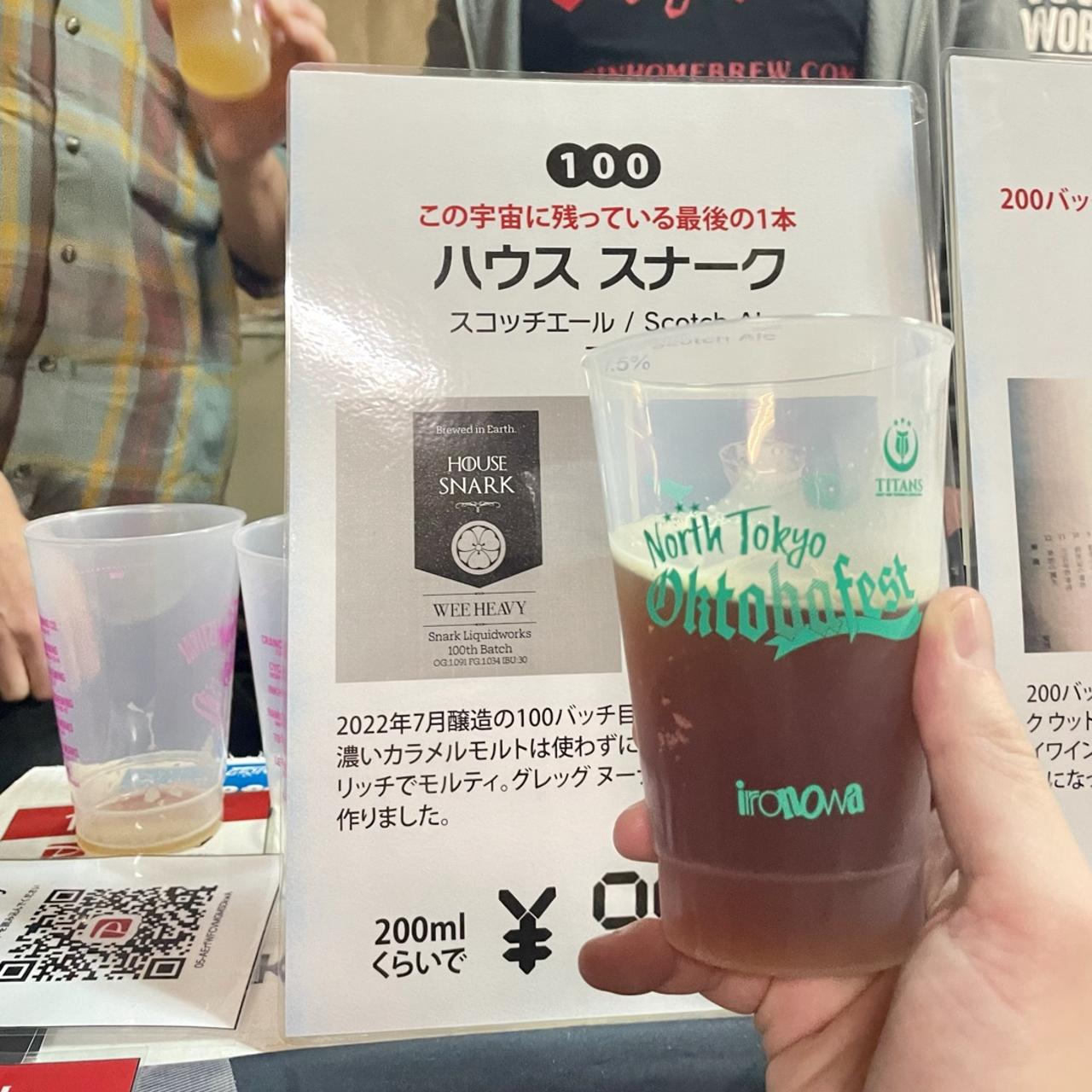 100バッチ目のビール、Wee Heavyというスタイルだそうでスコッチエールのことらしい。 カラメル感と酸味感じるゆるゆる飲むのにちょうどいいやつ