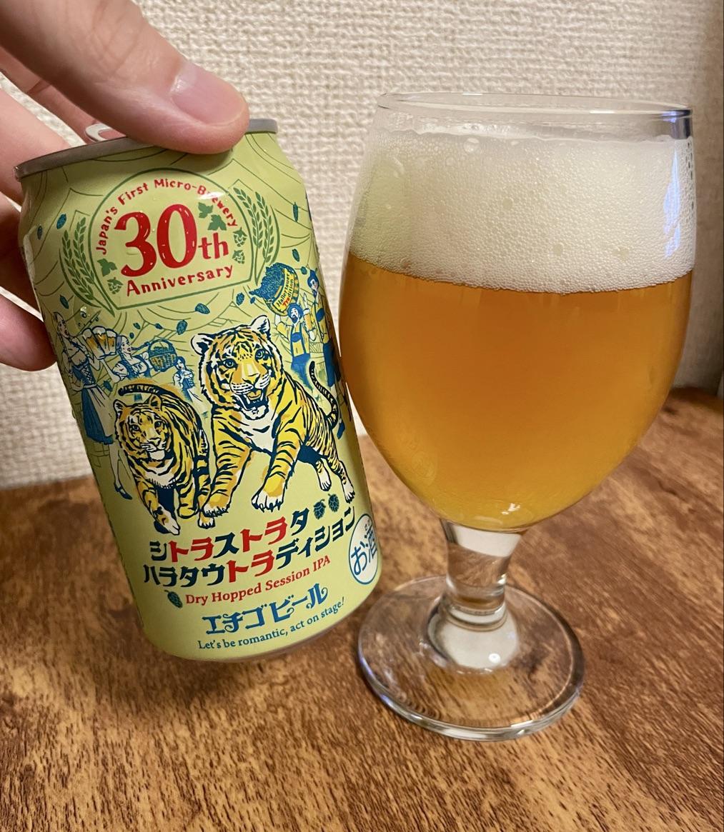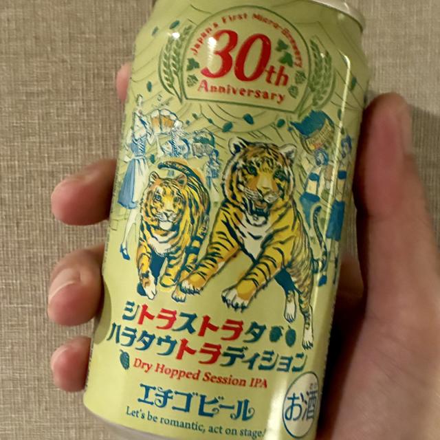 | 説明 | エチゴビール30周年を記念する限定醸造ビールの第二弾として、3種類のホップを使用した華やかさと穏やかさを併せ持つ、飲みやすさが特長の「シトラストラタハラタウトラディション」を2025年4月18日に新発売いたします。 柑橘やトロピカルフルーツの華やかな香りが特徴のホップ“シトラ”と“ストラタ”に加えて、ドイツの伝統的ホップ “ハラタウトラディション” を使用して穏やかな味わいに仕立てたセッションIPAです。 パッケージでは、使用しているホップ(シトラ・ストラタ)を2 頭の虎に見立てています。 舞台はドイツビアホール、30周年のパーティ会場。 2頭の虎が駆け抜けていく様子を見たスタッフが驚いて、持っている籠からホップ“ハラタウトラディション”が飛び散っている様子をイラストにしています。 籠にはHallertauer Tradition(ハラタウトラディション)とのラベルがついています。 |