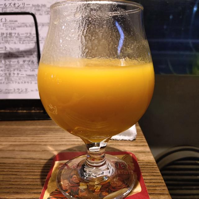 Kraan 伊予柑フルーツエール。 知らないブルワリーだし、恐る恐る頼んでみたけどめっちゃ美味しいオレンジジュース! 2%しかないのでほぼジュースなんだろうけど、伊予柑の皮の苦味があって甘すぎず、めちゃくちゃ好み!
