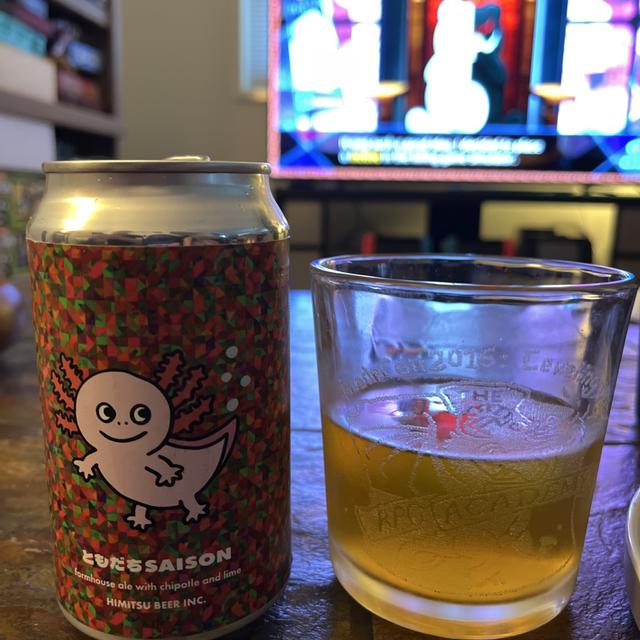 | 説明 | 大阪のおともだちtorneの太郎ちゃんと、けむパーのてっちゃん、パー子ちゃんと一緒に仕込んだおもしろくて美味いビールの第二弾ができあがりました。 使ったスペシャルな原材料はチポトレとライムです。 チポトレは唐辛子を原料にした香辛料でスモーキーで旨味があります。 今年は本場メキシコ産のチポトレが入手できず、自分達でチポトレを造るところからスタートしました。 けむパーさんは燻製のプロフェッショナル。 本場メキシコの良質な唐辛子をけむパーさんの工房でじっくりスモークして送っていただきました。 スモークする時に使ったチップはウイスキーバレルのチップやピートも使ってくれたみたいで仕上がりのビールの味にマッチしています。 ともだちSAISONを復習しておくと、僕たちが得意とするファームハウスエールをベースにチポトレの燻製香とライムの爽やかなフレーバーを溶け込ませたビールです。 今年のともだちSAISONはというと昨年の味わいはしっかりと引き継いでいて、スモーキーさとライムの爽やかさ、出汁の旨味もバッチリです。 去年のものより辛さは控えめで、ドリンカブル。 一口飲むと、ふわりと漂うスモーキーさと唐辛子のフレーバーを感じつつ出汁感の強い旨味を感じます。 昨年は鰹系の出汁の旨味がメインでしたが、今年は昆布や椎茸の出汁感がやや強め。 全部唐辛子から出た旨味なのですが、日本人の僕たちには出汁味に感じるのがとても面白いところです。 ビール自体はかなりドライな仕上がりです。 自分達で造ったチポトレの旨味とライムのフレッシュさで、何杯でも飲めてしまいます。 とてもやみつきになる味わいとはまさにこのことで、一口目はスモーキー。 二口目は爽やかで旨味がジューシー。 三口目はじゅわじゅわっと後味ピリ辛。 そしてライムの酸味でお口爽やか毎回リセット!! という感じであっという間にごくごく飲み干してしまうと思います。 発酵中は昨年のものより辛いかもと思っていましたが、熟成を経て辛味は今年の方がずいぶん穏やかに感じます。 今年もテイスティングと称してあっという間に3本飲み干してしまいました。 いかにもキワモノ系の組み合わせのビールですが、ビールとしてまとまり良く、楽しいビールだと思います。 明るいゴールドカラーのビールに顔を近づけると感じるスモーキーでスパイシーな香り。 一度飲んだら想像するだけで食欲が刺激されること間違いなしです。 |