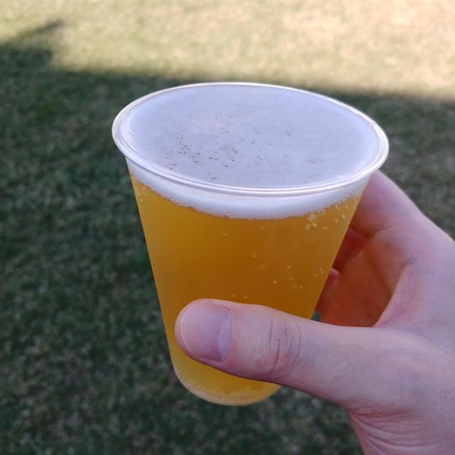 色は金色です。香りはフルーティーです。ホッピーでフルーティー、グレープ、甘く、すっきりとした軽いボディのような味がします。