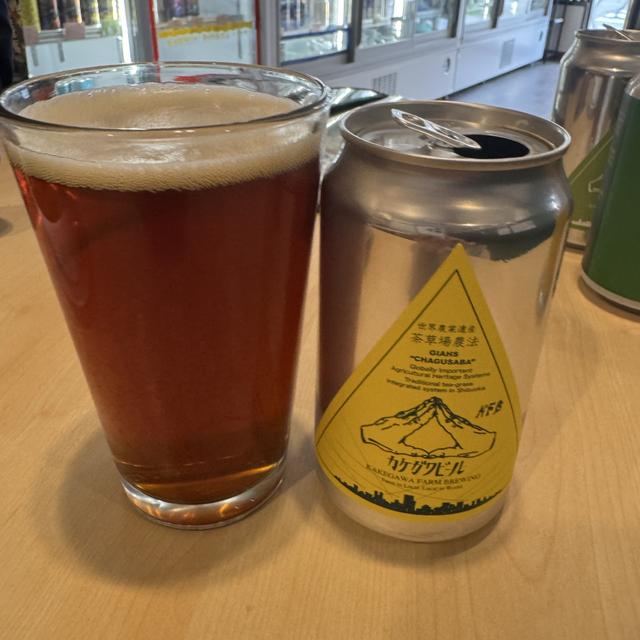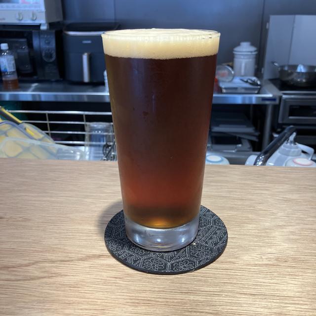 地元名産の「お茶」を使ったアンバーエール。 モルト由来の甘みが割と強めに感じられますが、温度があがると焙じ茶の香りがたってくるので、甘さ・苦さ・香ばしさがうまくバランスをとった味わいになって面白い。