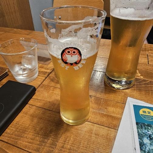 今日は偕楽園の花火大会🎆みたいで駅前混んでるな、意識せず着たナイトシフト(ふくろう)のTシャツで入店