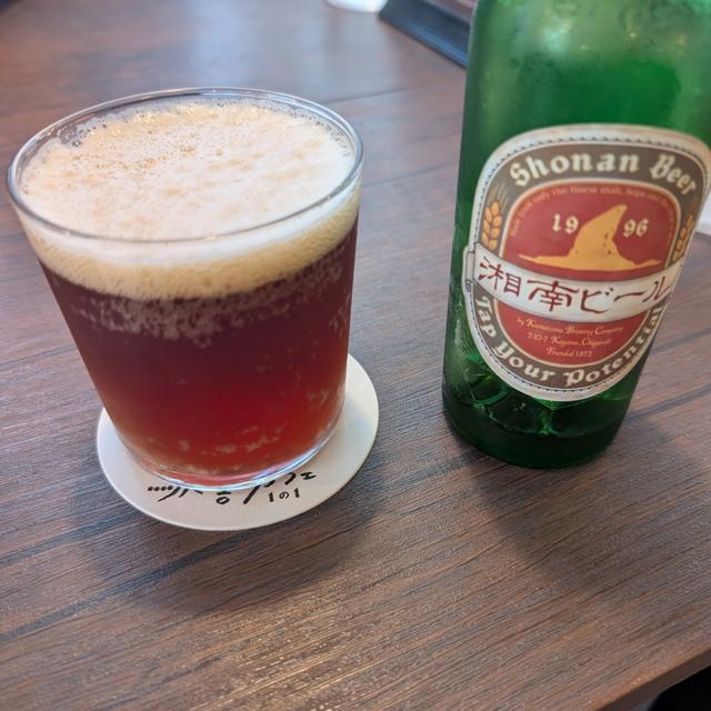 小田原駅そば、旧大雄山線の管理事務所を改装したという 「大雄山線 駅舎カフェ1の1」で湘南ビール。