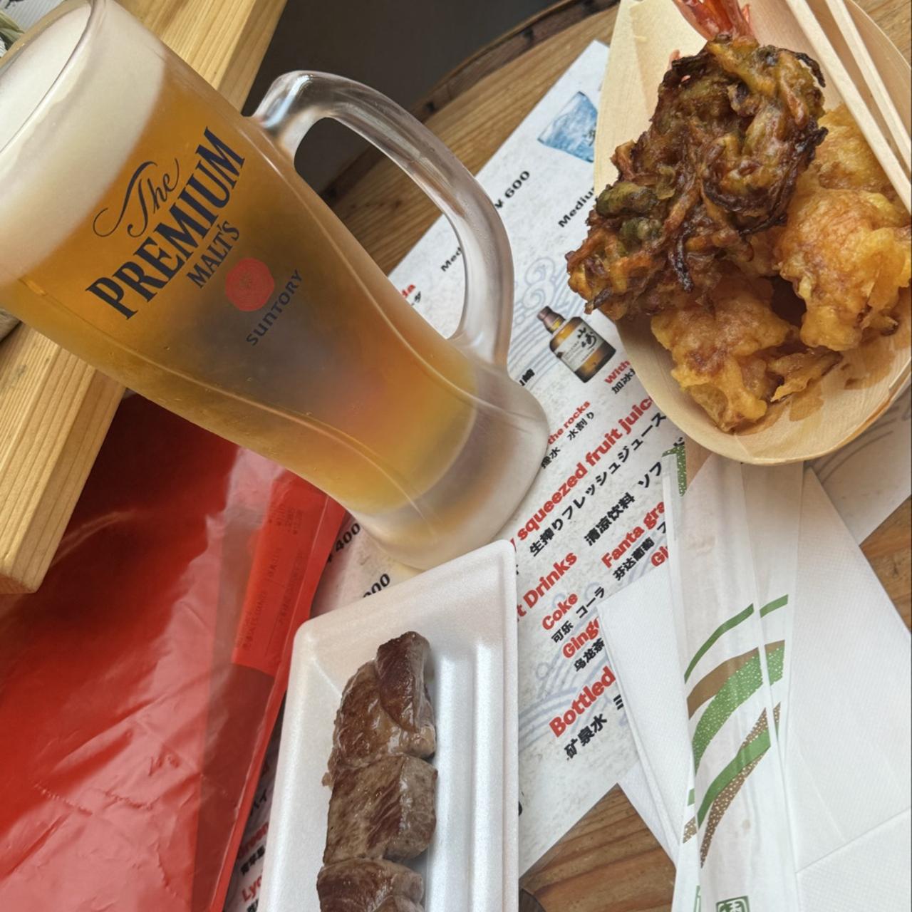 焼き鳥レストランの地元のビール、楽しい!👍🏼