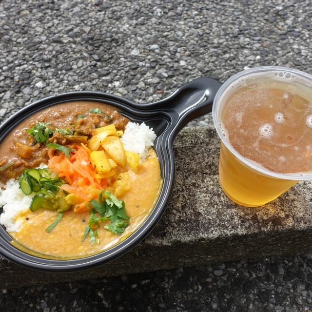 続いて、つながったばかりの息吹の生を。 あらためて飲むとグラッシーな風味が強く、甘みのある麦の味。 イベントにゲストで来ているフードトラックの、鹿肉キーマとダルのあいがけカレーといっしょに。