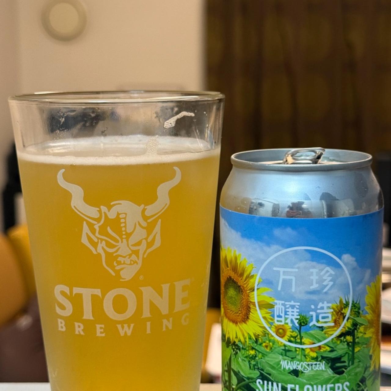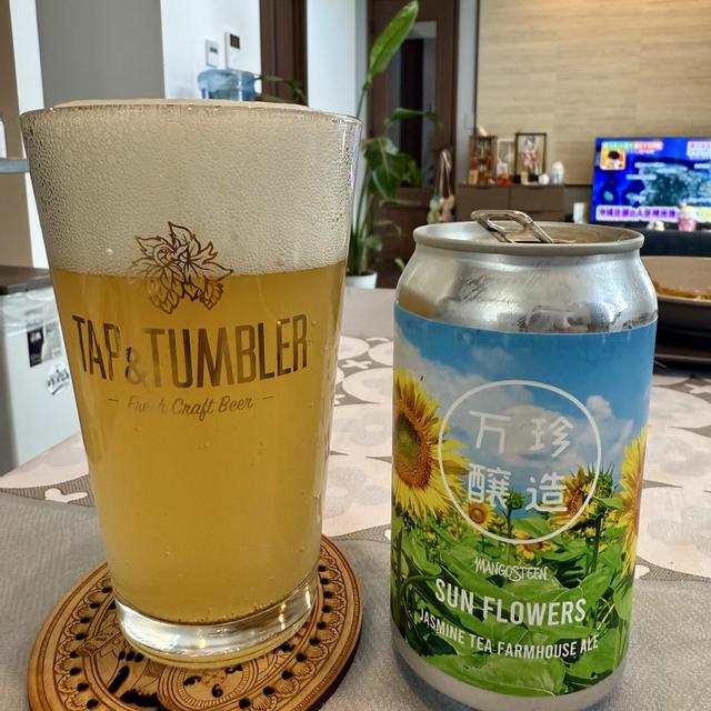 マンゴスチンブリューイングジャパンのサンフラワーズ、地ビール醸造所、ジャスミンティーを注入した農家のエール、とてもさわやかな香り、軽いかすんだ色、アルコール度数5.5%、それを愛し、歓声 🤙🏼🍺
