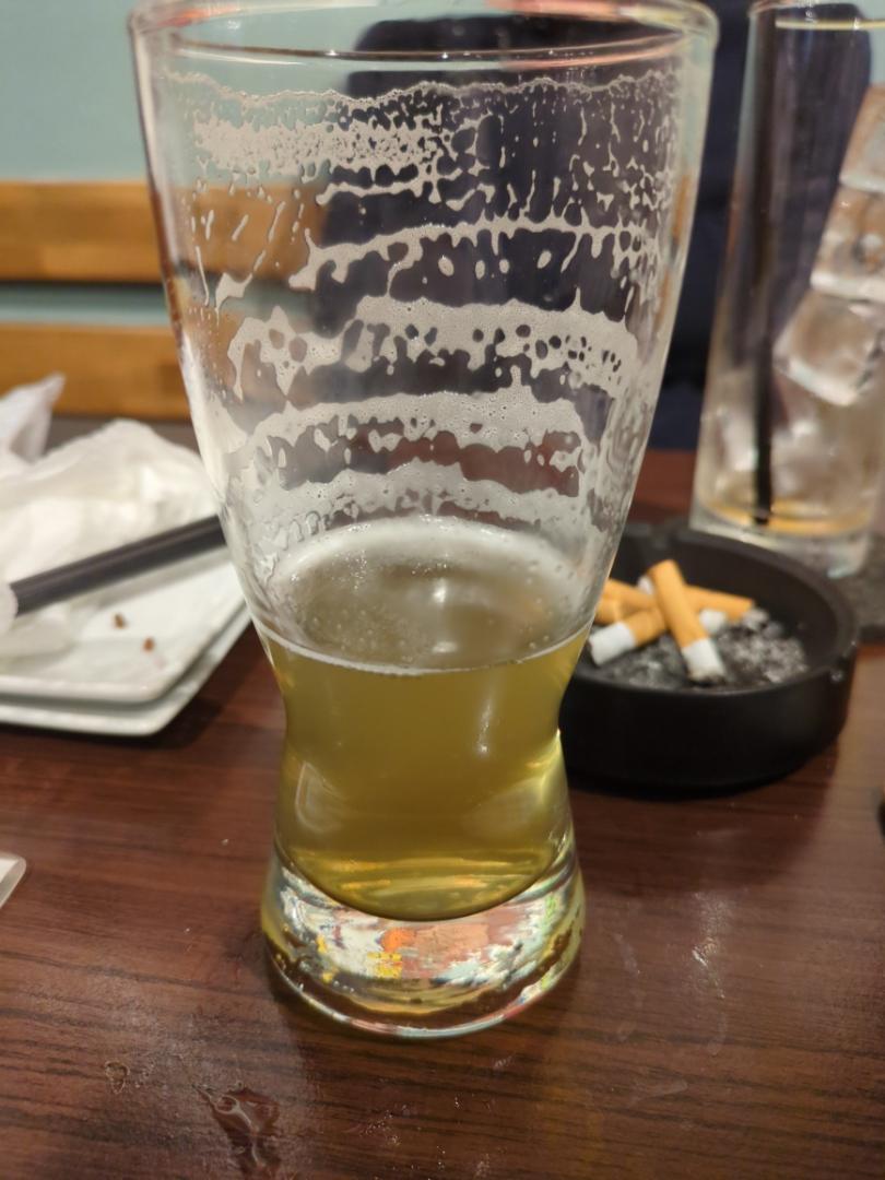 初来店! ヤニ中毒が管巻いてて臭い! 🍺乳酸っすな、🍎どこに? … あり? 飲んだことあったわー。