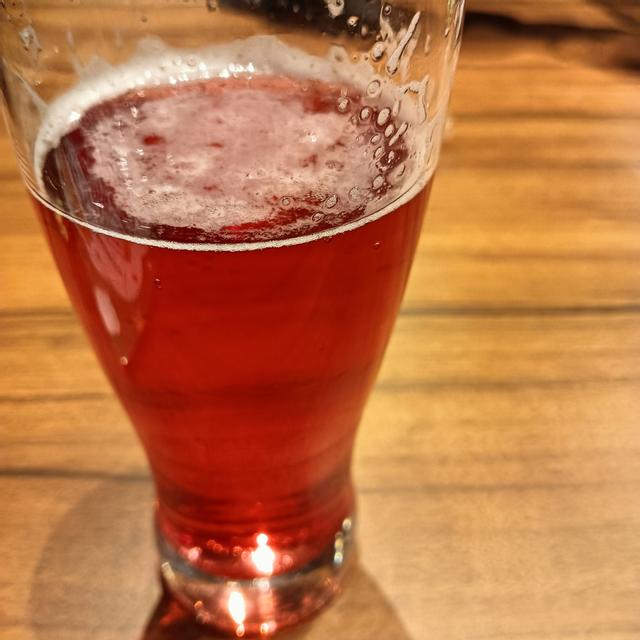 天然チェリーシロップ入りミネラルウォーター。そして、PVのホップの苦味だけがビールを出します。とても甘いので、もっと辛口にしたいです。しかし、ファミリーレストランには十分です。