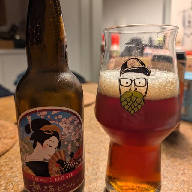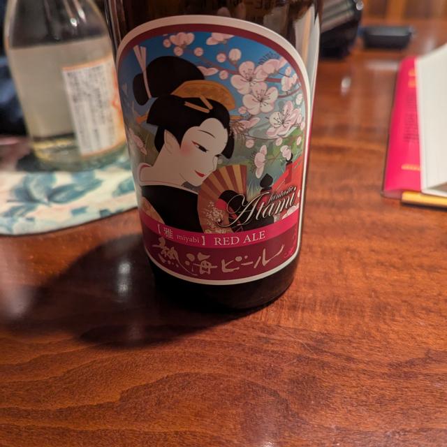 熱海の美しい日本のビールラベルのシリーズのもう一つ。このレッドエールは、ペールエールよりもはるかに優れています。きつくて不快ではありませんが、完全に風味豊かではありません。それはただそこに横たわっているだけです。ああ、素晴らしいラベル&京都で飲める!