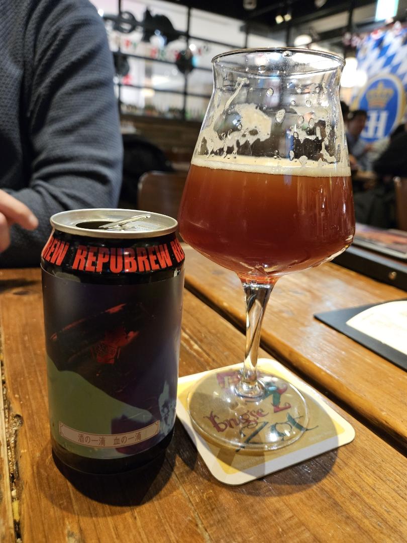 しっかりモルティでカラメルっぽい甘味。 後から苦味がスッキリ効いてバランス良く美味しい。 濁った濃いダークレッド。