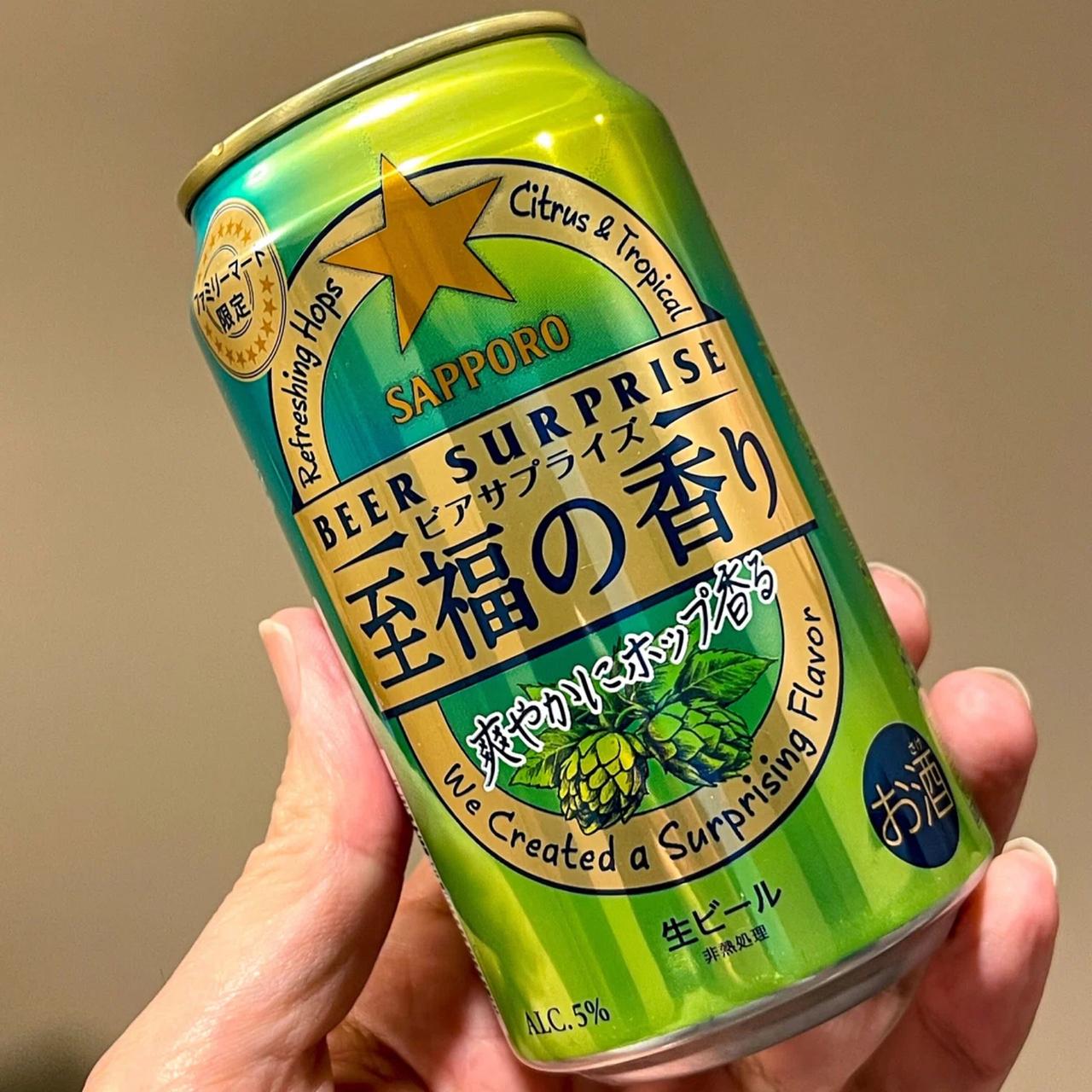 | 説明 | ■「ビアサプライズ」シリーズ初の IPA※の味わいをお届け! ファミリーマートとサッポロビールのコラボレーションブランドである「ビアサプライズシリーズ」は本年発売 8 周年を迎 えます。 第 14 弾となる今回の「サッポロ ビアサプライズ 至福の香り」は、ビアサプライズシリーズ初となる人気のビアスタ イル「IPA」(※)の味わいをイメージしたビールに仕上げました。 パッケージは、ホップの爽やかさを想起させる黄 緑色をベースとしながら、中央に配置したホップのイラストで芳醇な香りが楽しめる装いに仕上げました。 ※インディア・ペールエールの略。 18 世紀末に英国からインドへビールを輸出する際に、大量のホップを使用して苦 味を強くしたことが名前の由来とされるビアスタイル。 |