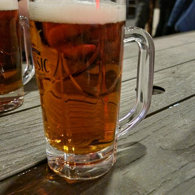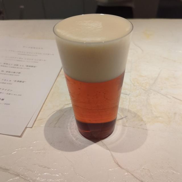 濃い琥珀色で澄んだビール。 きめ細やかで、良い泡立ち。