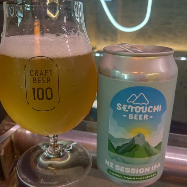 NZ Session IPA by Setouchiは、5.0%のアルコール度数でトロピカルフルーツとグレープフルーツの香りが特徴、その🍻名にふさわしい新造ビールです
