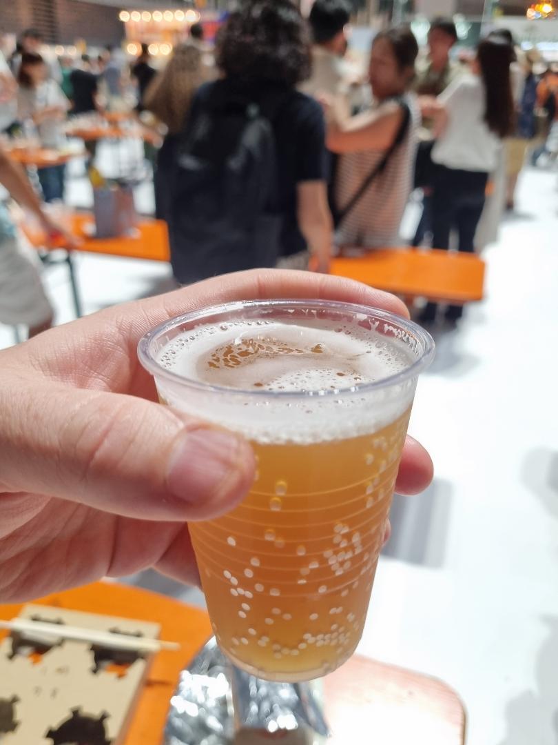 久しぶりに信州おさけ村に来れて嬉しい。 須坂フルーツエール。 リンゴのフルーツエールはサイダーとは明らかに違っていて、薄いブロンドエールにリンゴの果汁が加わった感じだ。 リンゴの酸味と甘味とホップのほろ苦さのハーモニーは悪くはない。