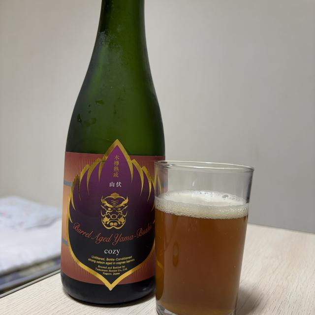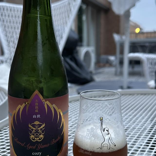 | 説明 | 我が最強の男の卒業を記念した特別な一本。 ビールの名前は、"cozy"です。 ”居心地がいい”とかいう意味。 ゆっくりと楽しい時間のおともになればいいなあと思って。 実は、本名が"Koji"。 というわけで、cozyはKojiのためなのです。 10/24が、彼の誕生日なもので、またもちょっと変則な発売日です。 fumuoに次ぐ、山伏の小瓶シリーズの第二弾でもあります。 専用に醸造したストロングセゾンを、フランス直送の某超有名なコニャック樽で熟成して仕上げました。 残念ながらここで名前は言えないのですが、「コニャック」と聞いて頭にうかぶ2つか3つの有名どころのうちの1つのです。 木樽での熟成は16ヶ月。 2月に瓶詰めして、その後8ヶ月以上の瓶内発酵・熟成を経てのリリースです。 仕込みの日に、ちょっとトラブルがあったりした思い出深いやつです。 今回は、サワーではありません。 やっぱりコニャック由来のブドウやアプリコットなんかを思わせるフルーティーさに、樽由来のウッディな印象が加わった複雑な味。 甘やかな印象と度数なりの飲み応えはあるのですが、それでもドライなのが、やっぱりぼくら流。 いつも、「最良の食中酒を目指す」なんていってますが、こいつは、あきらかに食事の最終盤/締めが似合う感じです。 ずっしり重たいフルーツケーキ、マドレーヌ、ダークチョコ、ドライフルーツ、チーズケーキや、葉巻なんかと一緒に、"cozy"な時間を過ごしていただくには最高なんじゃないかと。 "Koji"のマッチョなイメージからすると、ちょっとエレガントすぎる気もしますが、出会った人みんなを、あっというまに魅了する円熟の色男に、ふさわしいんじゃないかなと!? みんなで誕生日を一緒に祝ってくれたらうれしいです。 |