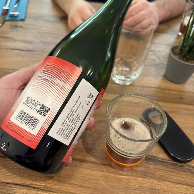 | 説明 | 木樽熟成の"blonde"と並んで、うちのバレルエイジの山伏シリーズの主力となるサワーエール。 とかいいながら、grand cruでない通常版は欠品しちゃっていたのですが、待望の再登場です。 grand cruも含めて数えると、今回で6バッチ目。 2018年の11月に醸造後、約24ヶ月間の樽熟成を経て、今年の1月に瓶詰め。 さらに約8ヶ月の瓶内発酵・熟成を経てのリリースです。 熟成した樽は、赤ワインの樽が5本とウィスキーの樽3本。 毎回進化してきていると思うのですが、今回のもかなりいいんじゃないかな。 B³ Miyamaと比較すると格段にワイン的で、飲み応えも感じます。 酵母・微生物により醸し出された複雑な味わいは、甘やかな印象がありながらも、あくまでもドライ。 ベルギーのフランダース・レッドなどとくらべると穏やかながらも、しっかりした酸味が特徴です。 いつも通り果物等はつかっていないのですが、今回は赤ワイン的というか、ぶどうのニュアンスを感じます。 例えるなら、メルローのような香りに、ピノノワールの酸味みたいな? まあ、ワインならそんなブレンドほぼないでしょうが、そんな感じで赤ワインを飲むようなシーンでお楽しみいただけたらと思います。 |