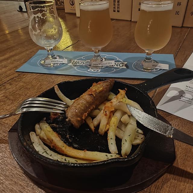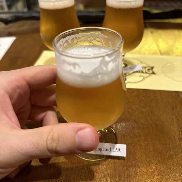 3ビールサンプルフライト(1,260円 / £6.10)。NEIPAに期待するものとはまったく異なります。柔らかくフルーティーというよりは、甘みがあり、キャラメルやバタースコッチの味がします。それでも十分に良いIPAです。
