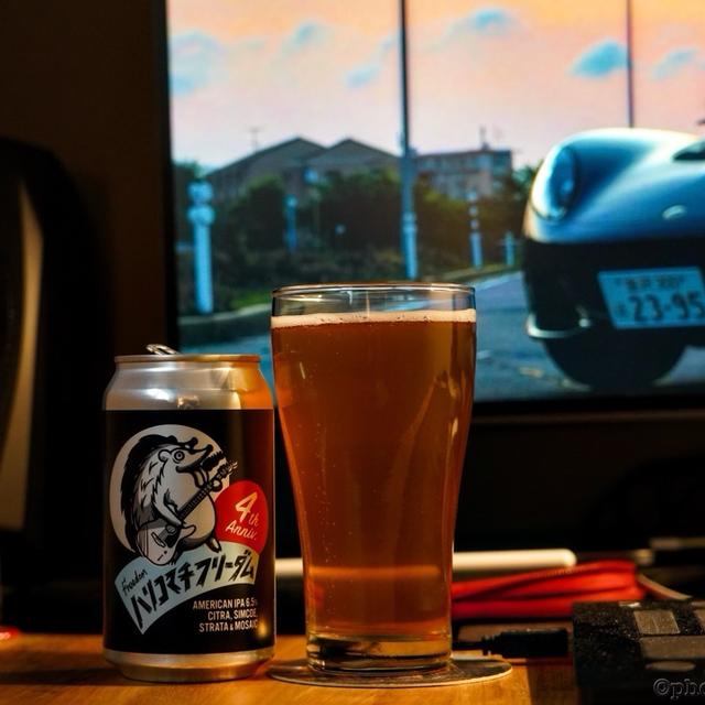 かなり強めでクセのあるホッピーさ。 右のグラスは缶底の澱。 ほどよく苦くてよき