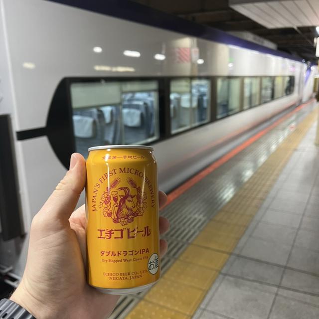 新潟から箱根行きの電車の中で。 新潟ビール!